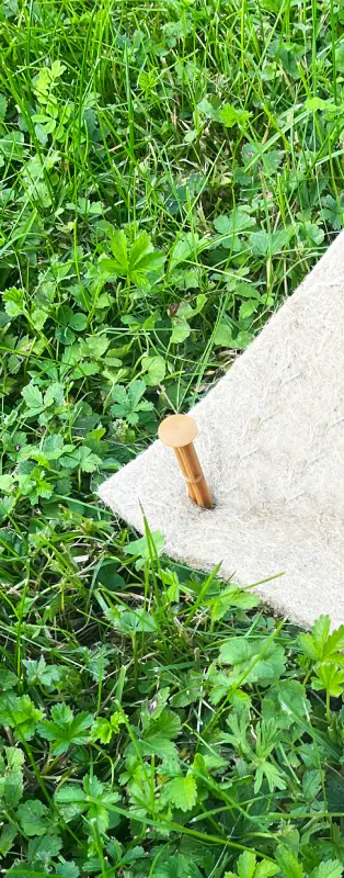 Nous avons constaté que beaucoup de personnes travaillant dans le domaine de l’espace vert utilisent des pointes en métal pour maintenir leur paillage. Elles ne sont pas biodégradables et doivent être extraites du sol.