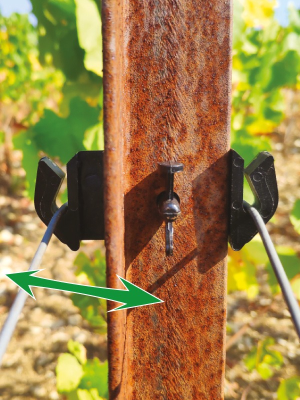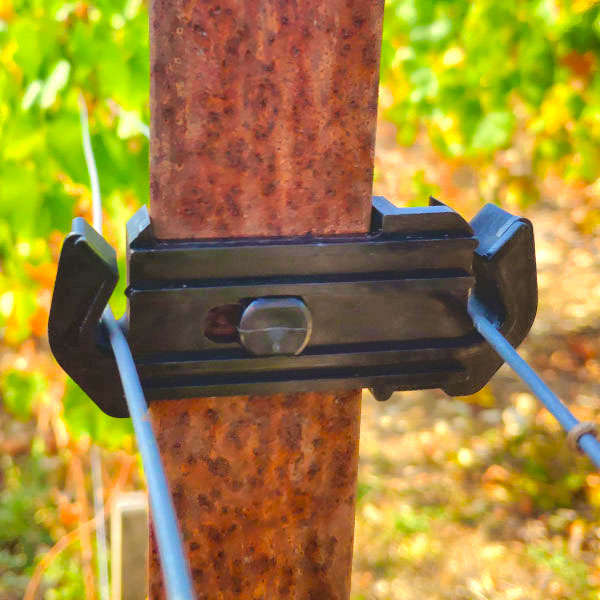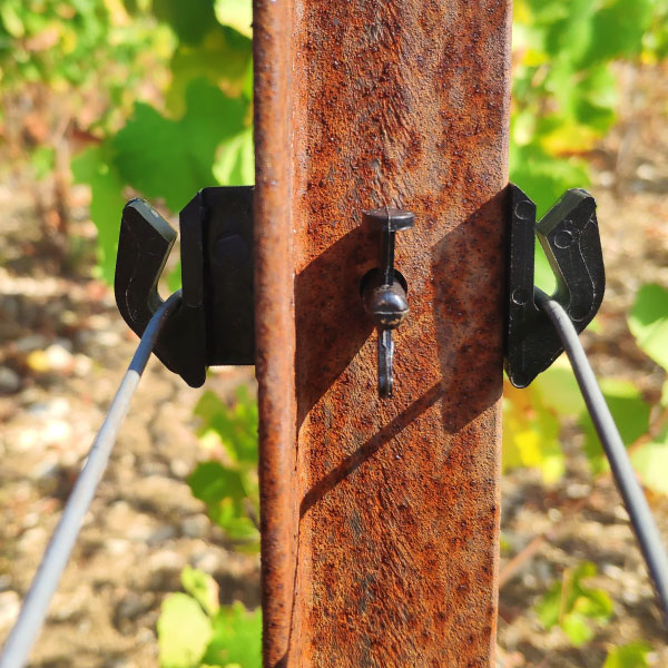 Barrette porte-fil anti-frottement pour piquet cornière désaxé