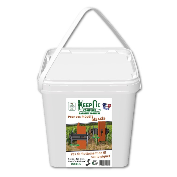 Keepfil Complice est conçu spécialement pour éviter tout frottement entre le fil et le piquet cornière. En effet, il arrive parfois qu’à cause de la dureté du sol ou la présence de pierres on ne puisse pas planter le piquet comme on l’aurait souhaité. Le piquet se retrouve mal aligné par rapport aux autres, voire même tordu. L’angle ainsi formé va créer une zone de frottement entre le fil et le côté de la cornière qui dépasse. Keepfil Complice permet d’écarter le fil de ce côté du piquet, ce qui évite l’abrasion du piquet et du fil. Tenir les pièces hors de la portée des jeunes enfants. Ne pas ingérer.