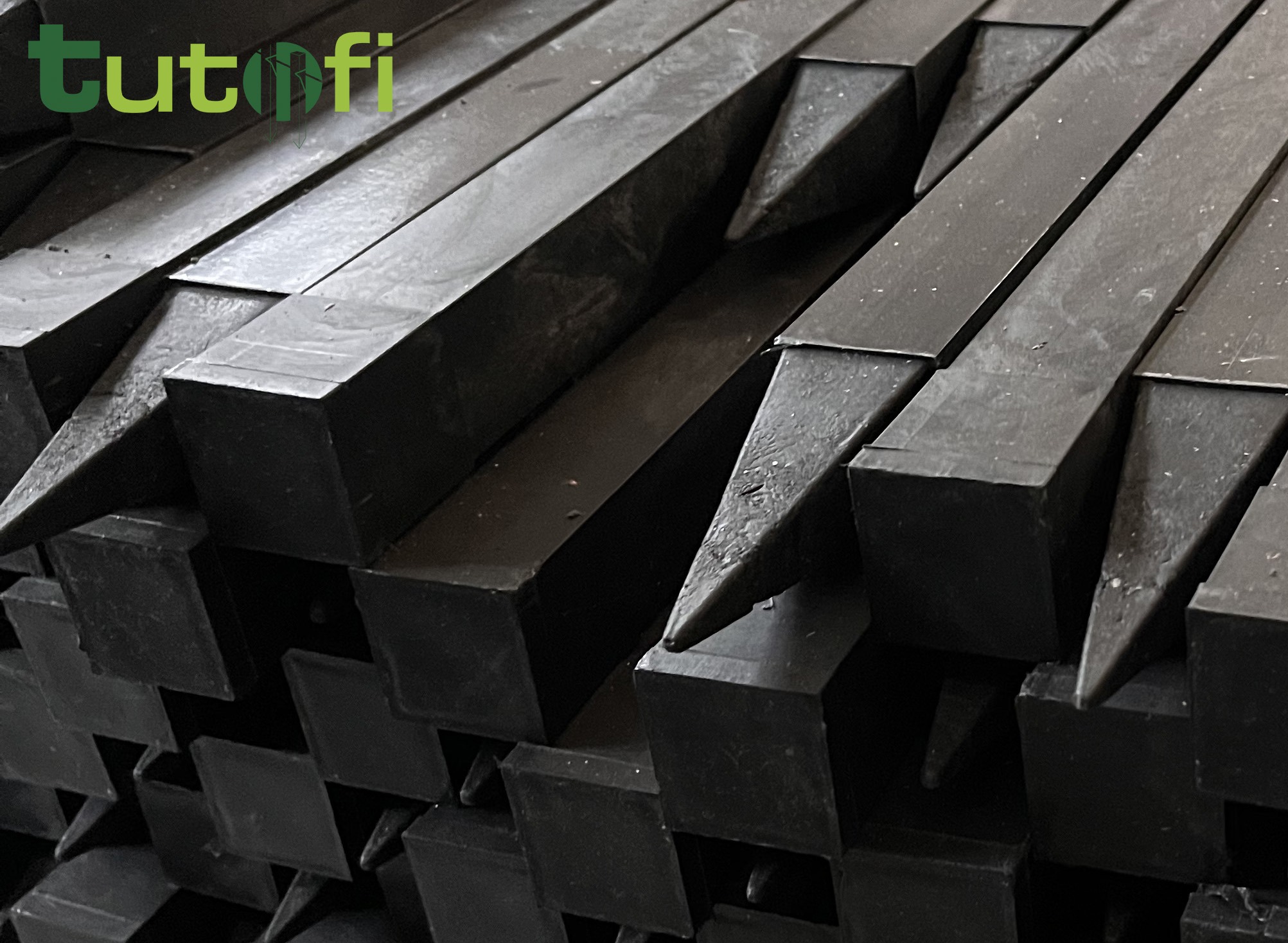 Les piquets TUTOFI® sont fabriqués en France à base de déchets industriels issus d’usines françaises et transformés avec de nouvelles méthodes, sans ajout de matières polluantes afin d’être réutilisés durablement. Les pièces ainsi obtenus sont recyclables. Les produits finis sont neutres, garantis sans relargage de matières toxiques. L’uniformité de la matière permet d’obtenir un piquet très solide, légèrement souple et facile à planter dans le sol. De plus, il ne pourrit pas et ne cause pas d’abrasion au niveau des fils. Compatible avec différents systèmes de tenue des fils : crampillons, écarteurs, notre système Keepfil Cornière, etc… La production française diminue l’impact environnemental du transport des matières et des produits finis. La chaîne de production a été pensée pour minimiser le transport.