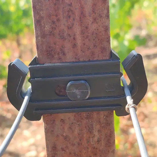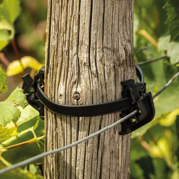Le collier Keepfix maintient solidement le Keepfil Universel au piquet. Sa haute résistance permet le palissage de vignes à végétation dense et soumises à de fortes contraintes. Le système de serrage est placé à la main sur le piquet, puis fixé grâce à la pince de serrage STHV.